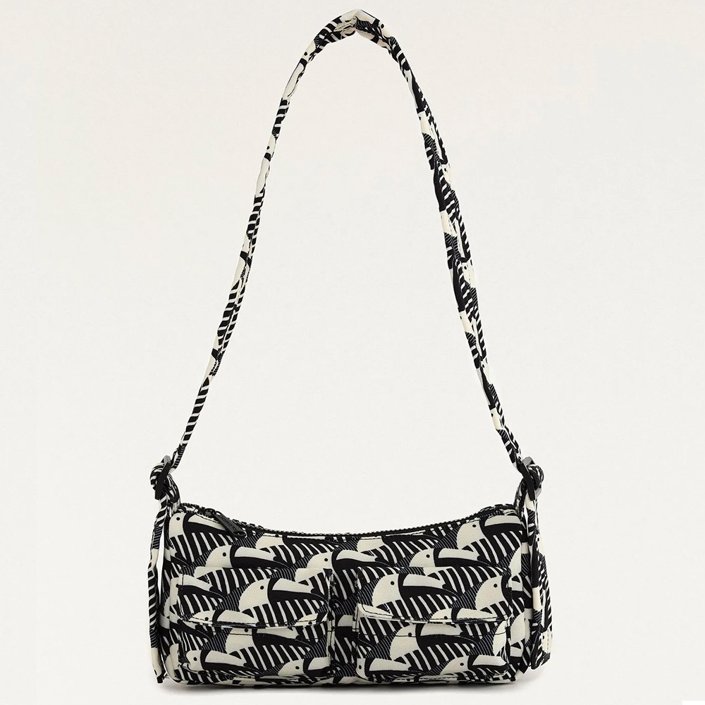 Esta bolsa tem fechamento por zíper, dois bolsos frontais e um bolso na parte traseira, ideal para guardar seu essencial com segurança. Seu design com estampa de bico de tucano dá um toque moderno e charmoso para compor diferentes looks.