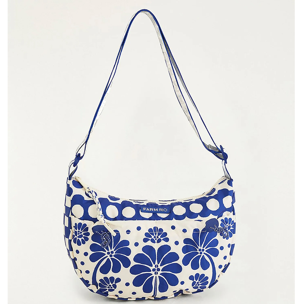 A Bolsa Farm Banana possui tamanho pequeno, formato meia lua, compartimento interno amplo com bolso de fechamento em zíper, tag emborrachada da marca na parte frontal, bolsos frontais, alça de ombro regulável em gorgurão com nome da marca e fechamento superior em zíper.