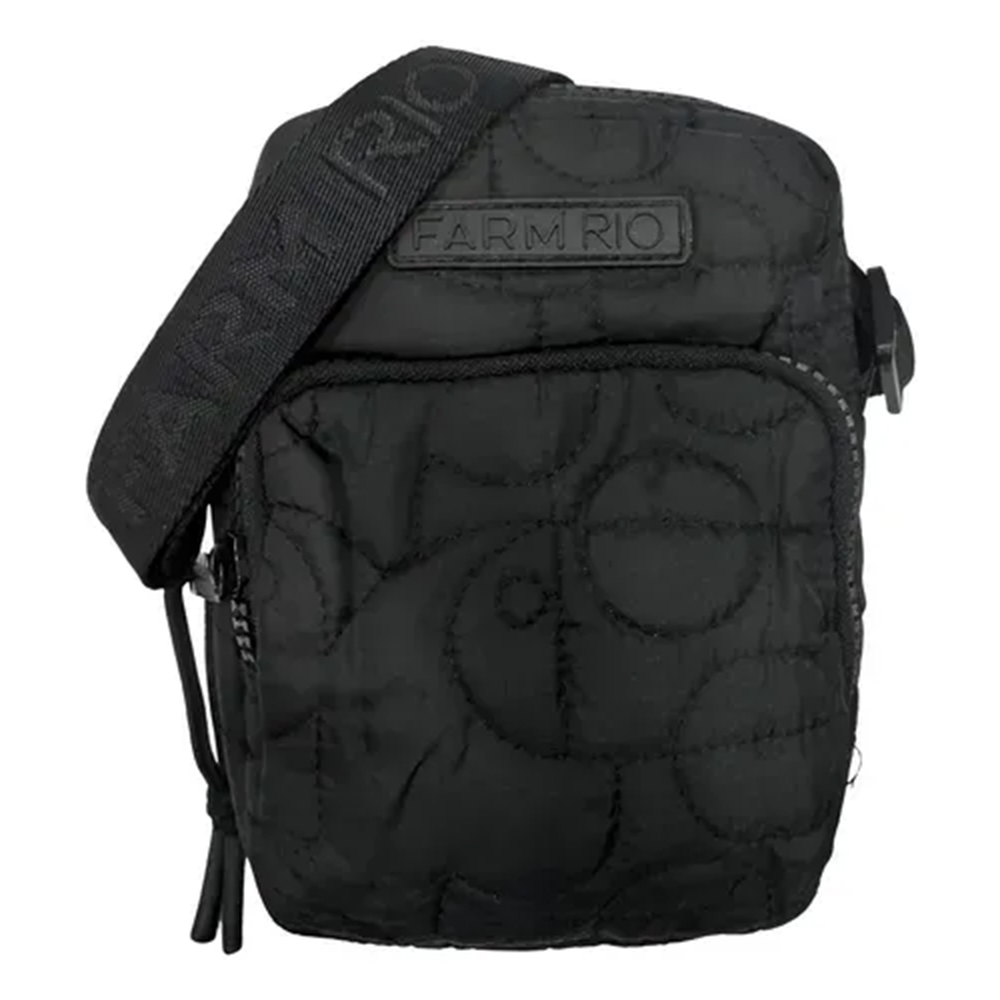 A Bolsa Farm Da Gema Puffer Preto e confeccionada em poliéster. A peça possui tamanho pequeno, formato retangular, compartimento interno com forro, bolso posterior, tag da marca aplicada em borracha na parte frontal, superfície em matelassê, alça de ombro com regulafem, bolso frontal com fechamento por zíper com puchador e fechamento superior por zíper.