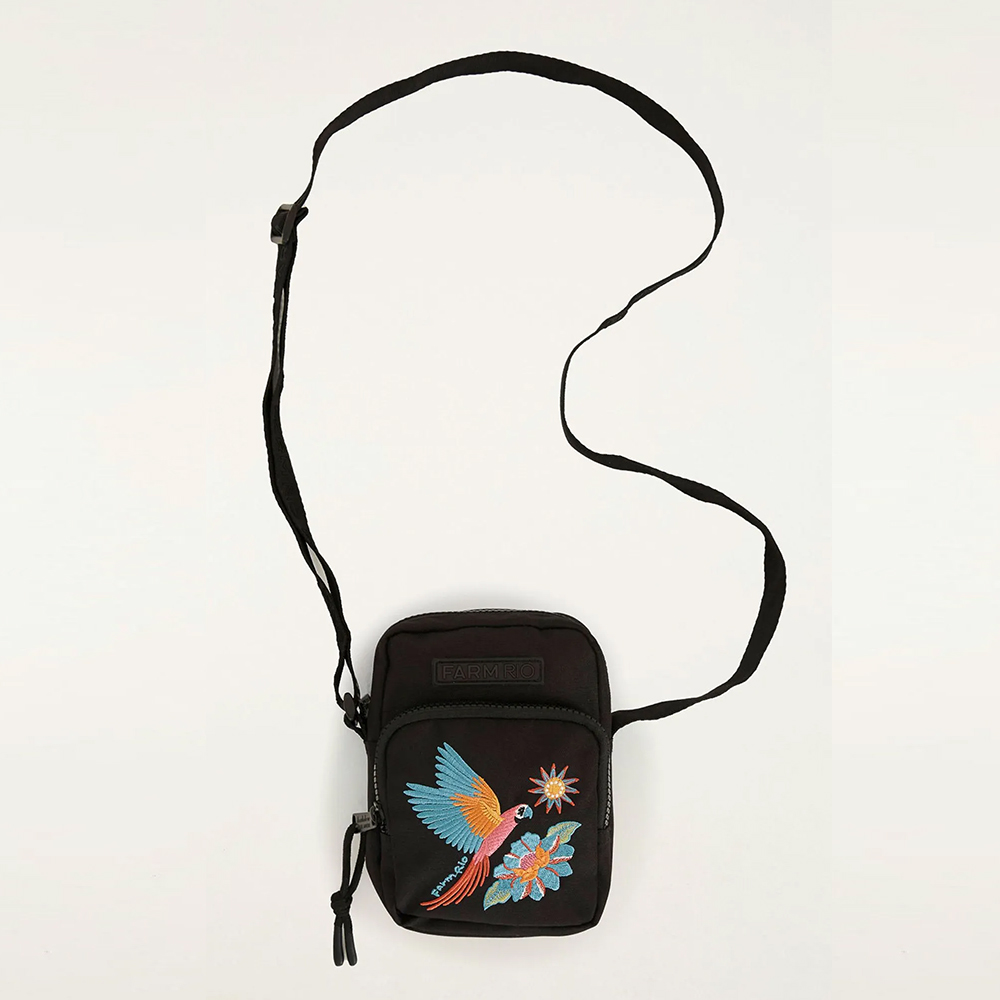 Bolsa da gema samba das araras. bolsinha transversal shoulder bag, com alça regulável. abertura principal e bolso frontal com fechos de zíper. o que não se veste, se vive. chegou farm etc, a marca de lifestyle da farm rio.