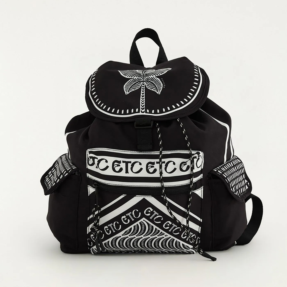 Mochila confeccionada em material resistente com aba frontal sobreposta, alças acolchoadas e ajustáveis. bolso frontal, fechamento por cordão e compartimento interno amplo.
