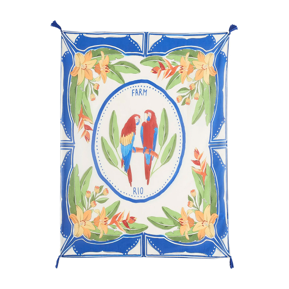 A Canga Farm Praiana Destino Tropical é confeccionada em tecido sem elastecidade. A peça possui tamanho grande, formato retangular, mix de estampas em cores contrastantes e ponteiraas em tassel. Acompanha bolsa pequena para uso opcional com parte frontal em material sintético com estampa figurativa e fechamento superior por zíper com gancho em metal.