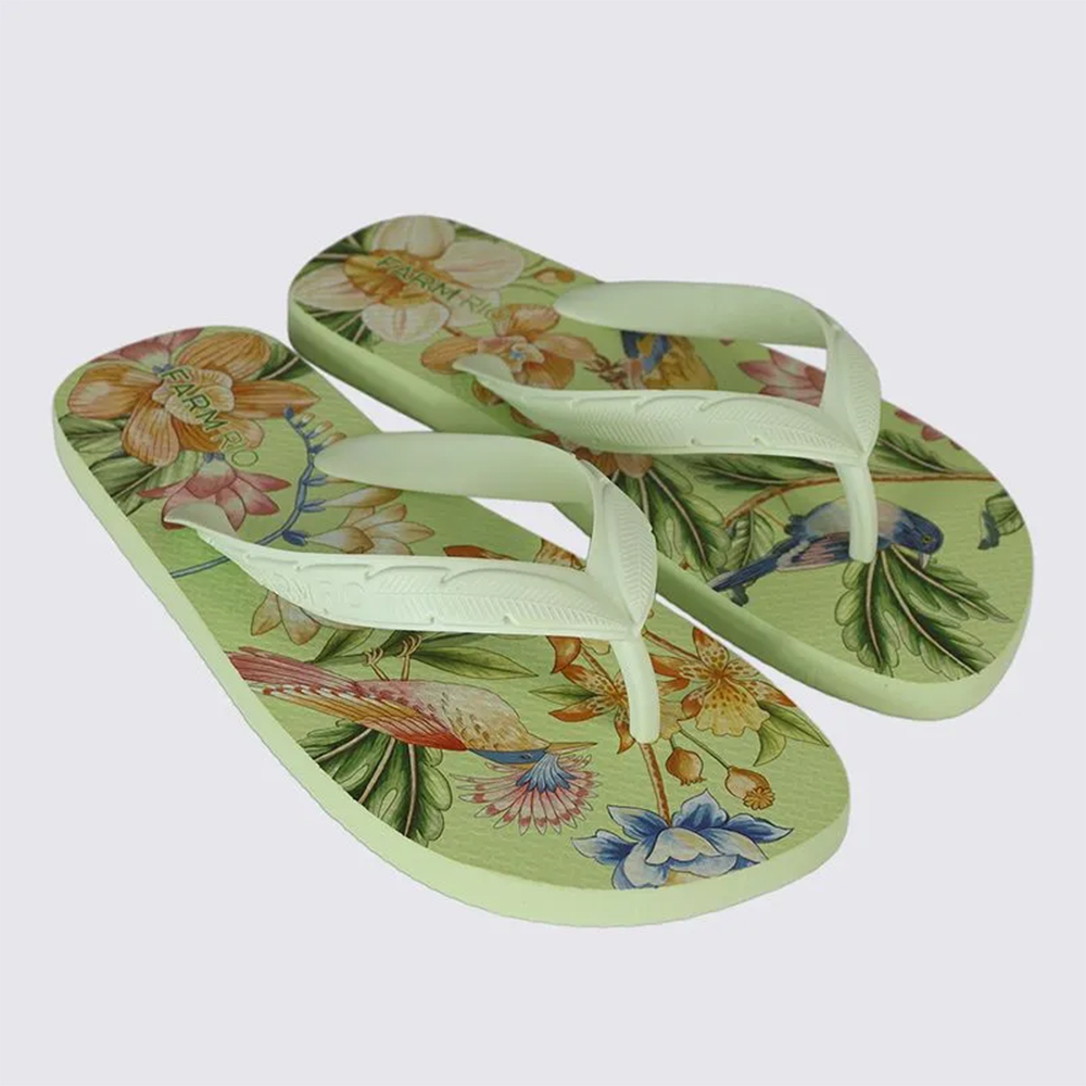 O Chinelo Farm Jangada Verde Calmaria é a escolha perfeita para quem busca um calçado que combine conforto, estilo e um toque de originalidade. Com uma estampa vibrante inspirada na natureza é ideal para compor looks casuais e descontraídos, seja para relaxar em casa, ir à praia ou passear.