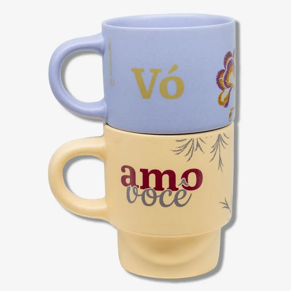 Composto por duas canecas em cerâmica, uma com a palavra “Vó” e outra com a mensagem “Amo Você”, esse conjunto une delicadeza e funcionalidade em um design moderno e encantador.