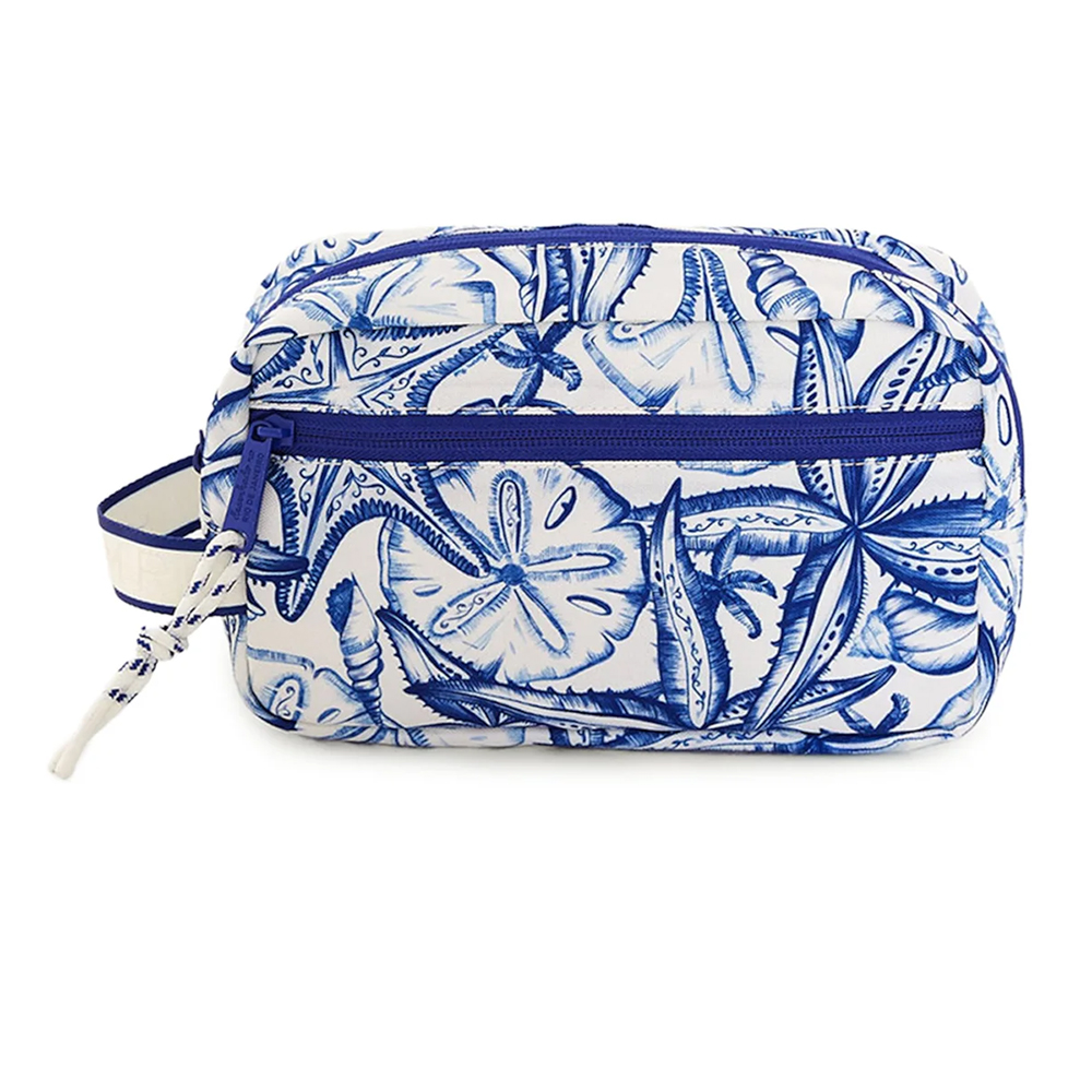 A Necessaire Farm Amô Aventureiro possui formato retangular, tamanho pequeno, compartimento interno com bolso embutido com fechamento por zíper, alça de mão média na parte lateral em gorgurão, bolso frontal com fechamento por zíper com puxador e fechamento superior por zíper.